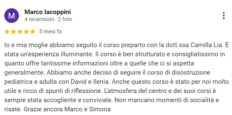 SESTO INCONTRO OPZIONALE SULLE MANOVRE DI DISOSTRUZIONE AGGIUNGENDO 20 EURO A PERSONA ANZICHE’ 30 EURO O 30 EURO SE IN COPPIA ANZICHE’ 50 EURO