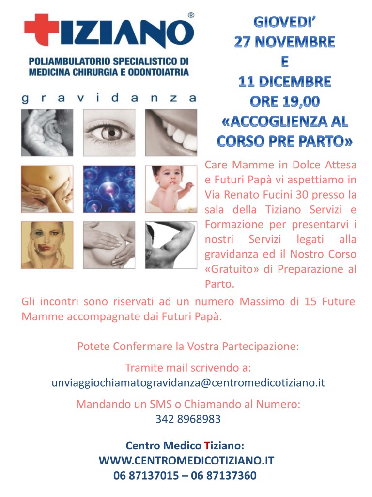 Corso di Preparazione al Parto TizianoPubblicato 6 Novembre 2014 in Corso Preparto Gratuito del Centro Medico Tiziano presso di noi. https://tizianoformazione.it/wp-content/uploads/2014/11/ACCOGLIENZA-AL-CORSO-PREPARTO-768x1024.jpg Corso di Preparazione al Parto Tiziano