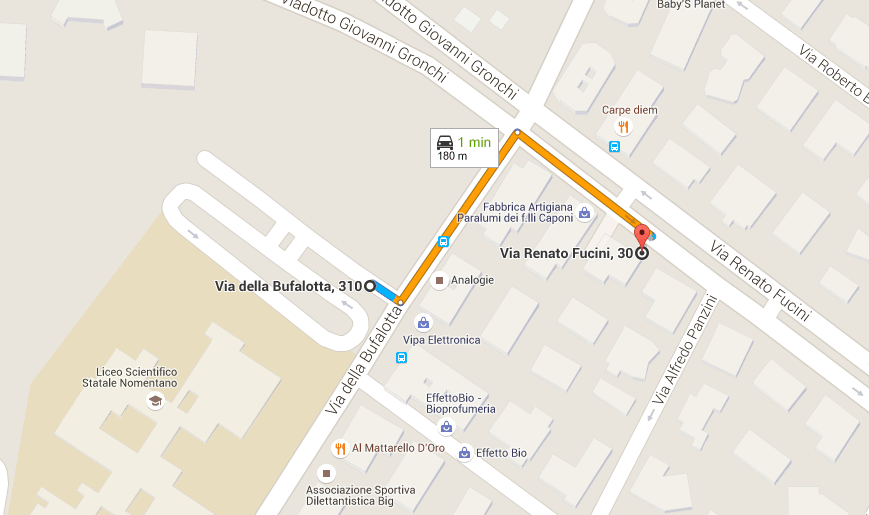 Seguite le indicazioni verso Roma Nomentana. Parcheggiate sulla strada di Via Renato Fucini o Via Bufalotta incrocio con Via Fucini.